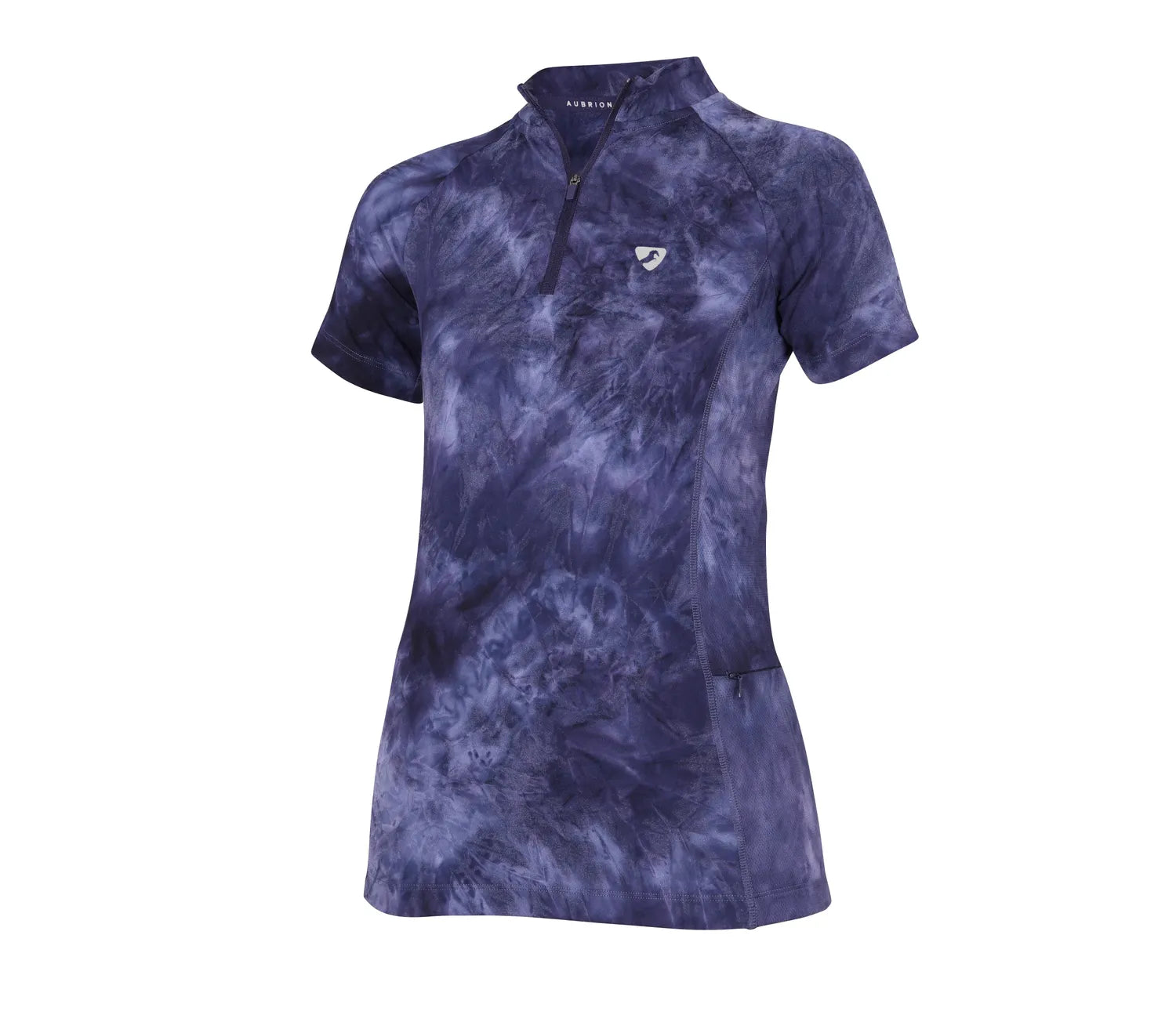 Aubrion Revive Short Sleeve Sun Shirt for the ultimate in athletic performance, the Revive short sleeve base layer offers comfort and support to the active rider. Body skimming for a lightweight second skin feel, moisture management technology and ventilated side panels keep the body comfortable. UPF 50+ protects skin from the sun's harmful rays. Raglan sleeve construction for increased range of motion, 1/4 zip neck for more or less ventilation, side zip pocket for safe keeping of essentials. Further detail: main fabric UPF50+, ventilated side panels, ¼ zip, chin guard, body skimming fit, zip side pocket, comfort seams, Aubrion prints.